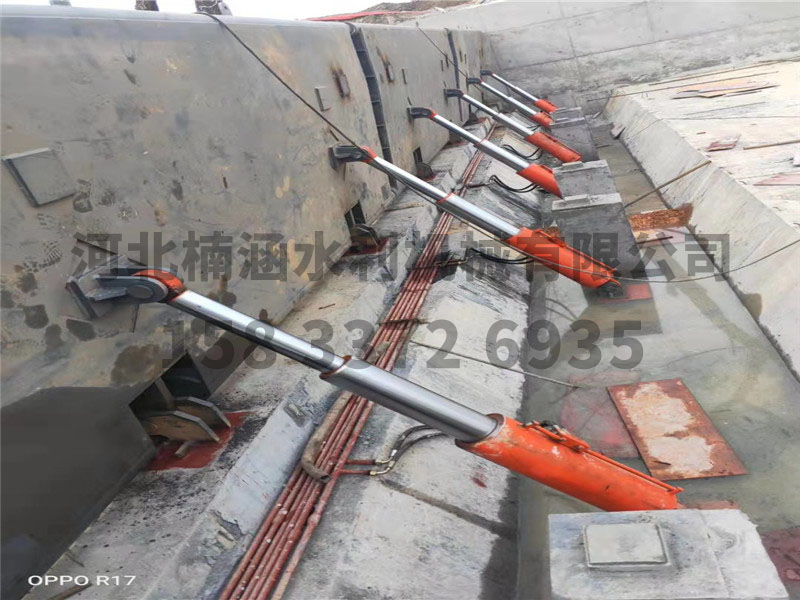 液壓升降壩是新興的一種攔河景觀壩,將攔河閘分為多扇閘門,分別啟閉;它利用三絞點支撐原理,在閘門背后設置兩個液壓缸,進行閘門的啟閉機操作。