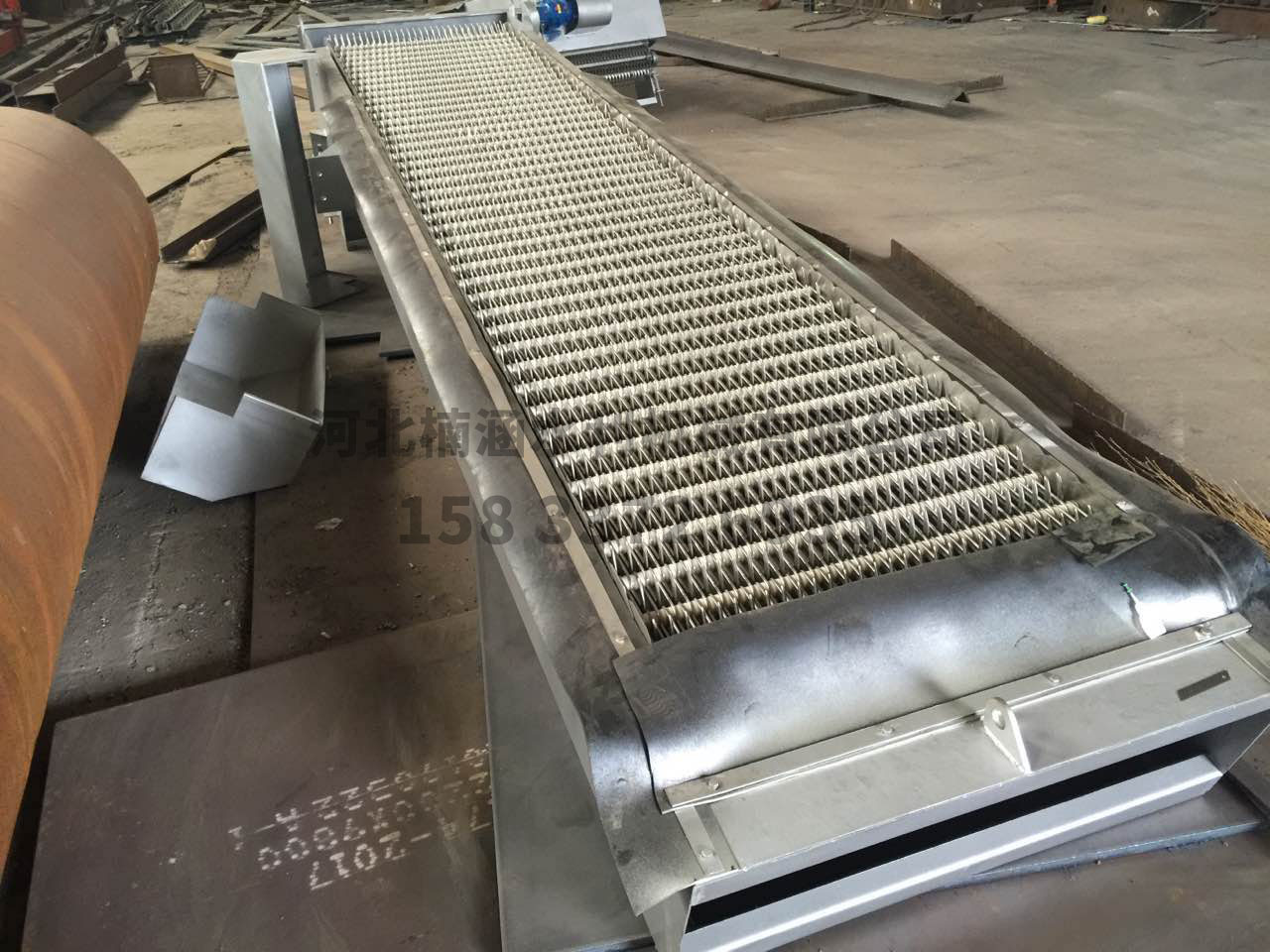 在污水處理前工序中,攔截、清除各種固體顆粒物、漂浮物等。使后續處理工序得以順利進行。是市政污水、工業污水;紡織、造紙等處理過程中攔污、除渣的關鍵設備。該機有柵齒柵齒軸、鏈板等組成柵網,以替代傳統格柵的柵條。柵網在機架內作回轉運動,從而將污水中的懸浮物攔截并不斷分離水中的懸浮物,因而工作效率高,運動平穩格柵前后水位差小,并且不堵塞。